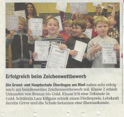 Die Klasse 2 und die Kunst-AG gewannen den 3. Platz bei der Umweltmeisterschaft der Stadt Singen.